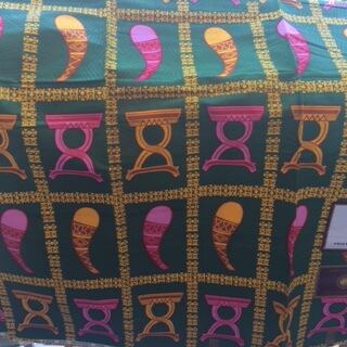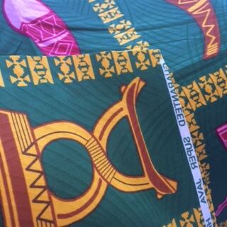 グリーンにピンクやイエローが入ったカラフルなアフリカンプリント。